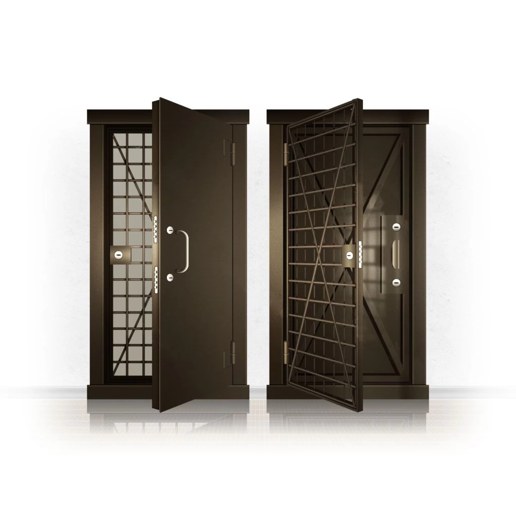 Металлические двери КХО и КХН представляют собой входные блоки, обладающие высоким уровнем взломостойкости и состоят из трех основных элементов: усиленного каркаса, сплошного металлического полотна и решетчатой двери. Дверной блок изготавливается из стального уголка 100*100 мм. Места крепления блока к стене цементируются и закрываются стальными наличниками шириной 40 мм. Крепеж заходит вглубь стены на 80 мм. В конструкции внешней створки монтируются ребра жесткости, для обшивки используется сталь толщиной не менее 3 мм. Внутренняя решетка изготавливается из прутка диаметром 16 мм. Размер ячеек решетки должен составлять не более 15 на 15 см. В точках пересечения прутья надежно приваривают друг к другу. В КХО и КХН необходимо поддерживать определенную температуру и влажность. Для этого внутреннее пространство глухой двери заполняется теплоизоляционным материалом, а по периметру двери приклеивается уплотнитель. Такие двери оборудуются замками с повышенным уровнем взломостойкости. Специализированные двери КХО и КХН в Богучаре могут быть оснащены сигнализацией, в конструкции могут быть проушины для навесного замка и элементами для опечатывания. Если идет речь о двери в комнату хранения оружия, в створке оборудуется окно для выдачи оружия и спец. средств, которое накрывается стальной дверцей.