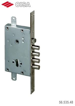 CISA REVOLUTION PRO 56.535.48 - Корпус замка врезного цилиндрового под ручку с защелкой, универсальный, с лицевой планкой и системой блокировки PRO при попытке взлома. Имеет особую систему шестереночного редуктора REVOLUTION, которое делает выдвижение ригелей плавным и бесшумным. Замок обладает высоким качеством и при выборе хорошего цилиндра эффективно защитит дом или офис от недоброжелателей. Данные замки рекомендуется устанавливать на дверь в паре с сувальдными замками. Cisa (Италия) - один из флагманов мирового производства замков и синоним качества и надёжности.