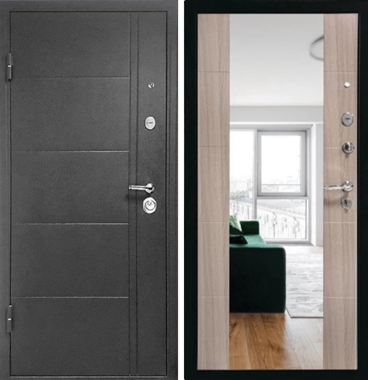 Надежная входная Дверь Эверест Зеркало Сандал Серый премиум класса по цене 33 563 руб. Большая толщина стали защитит от проникновения в ваш дом, квартиру или коттедж. Используется очень качественная фурнитура: замки, цилиндры, ручки, защелки. Покрытие и отделка двери изготовлено под внимательным контролем производителя. Дверь имеет долгий срок службы и гарантию.