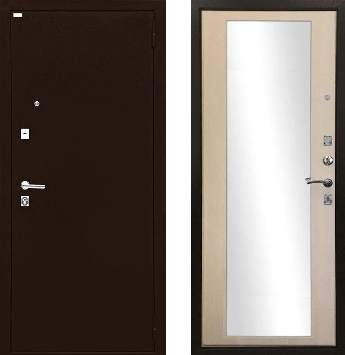 Надежная входная Дверь Ратибор Люкс Зеркало Экодуб премиум класса по цене 30 883 руб. Большая толщина стали защитит от проникновения в ваш дом, квартиру или коттедж. Используется очень качественная фурнитура: замки, цилиндры, ручки, защелки. Покрытие и отделка двери изготовлено под внимательным контролем производителя. Дверь имеет долгий срок службы и гарантию.